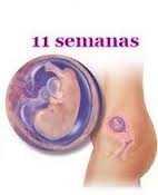Na décima primeira semana de gravidez o embrião mede em torno de 4 centímetros (tamanho de um dedo polegar) e já tem todo o corpinho formado.