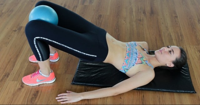 3º abdominal: a posição inicial continua a mesma, mas coloque uma bola de plástico entre os joelhos. Eleve o quadril e contraia abdome e glúteos sem deixar a bola cair. Fique 10 segundos. Repita três vezes. Aos poucos, aumente o tempo para 30 segundos.