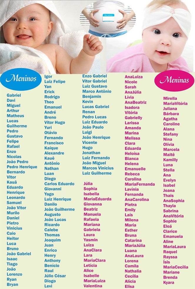Viu opções não faltam? Agora, faça uma seleção, pronuncie bastante, pergunte aos parentes ou amigos e sente com o seu marido para decidir logo o nome composto mais bonito para o seu bebê!