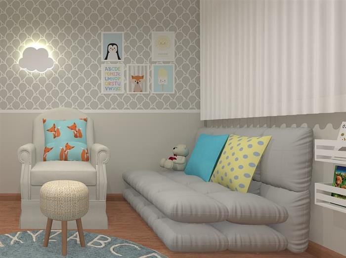 – Hoje em dia existem os móveis de bebê (berço, guarda roupa e cômoda) na cor cinza. Logo, quando optar por comprar os móveis na cor cinza, você pode pintar as paredes de branco ou cinza claro e colorir o ambiente com itens decorativos como: tapetes, almofadas, protetores de berço, quadros e painéis decorativos, cortinas, poltronas ou puffs, brinquedos, luminárias e outros.